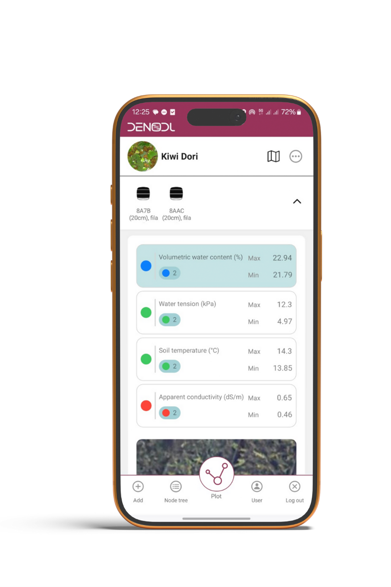 DENODL® has developed a system that automates data analysis, delivering high added value. This system consists of automated reports that provide users with information about the condition of their crops and simple, precise recommendations for decision-making. It integrates data from soil probes, plant information, weather forecasts, remote sensing, and other key factors to deliver specific analyses.