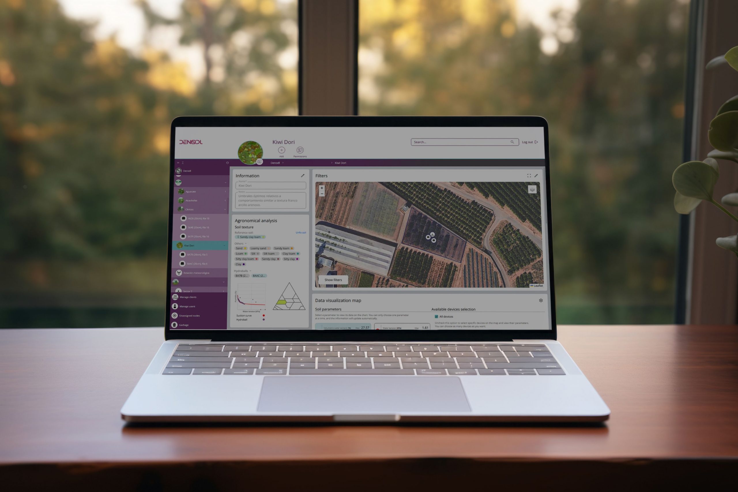DENODL®App est une plateforme SaaS de visualisation et de gestion des données qui permet de créer un jumeau numérique pour les exploitations agricoles, les villes intelligentes, les parcs et jardins, les terrains de golf et d’autres secteurs. Elle comprend une cartographie détaillée des installations, localisant les zones d’irrigation, les espaces verts et les sondes, avec une interface intuitive et conviviale.